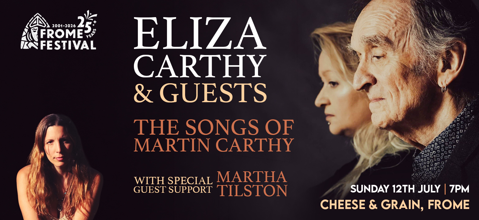 Jul 12 Eliza Carthy -The Songs of Martin Carthy 19:00 - 21:00 Cheese and Grain Market Yard, Frome Event Details Get Directions